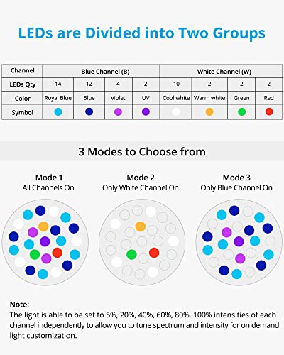With contact management, white and blue channels will be operated collectively or independently, permitting you to regulate the sunshine depth and spectrum in your tank