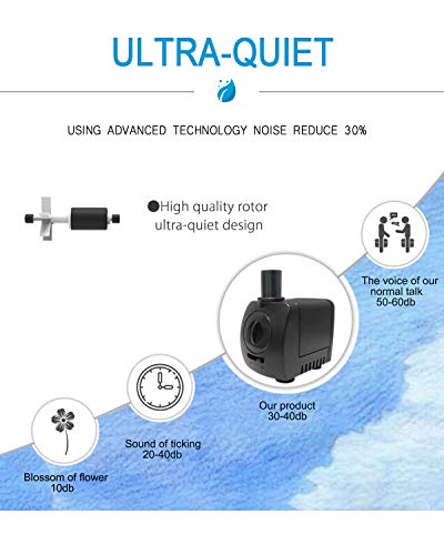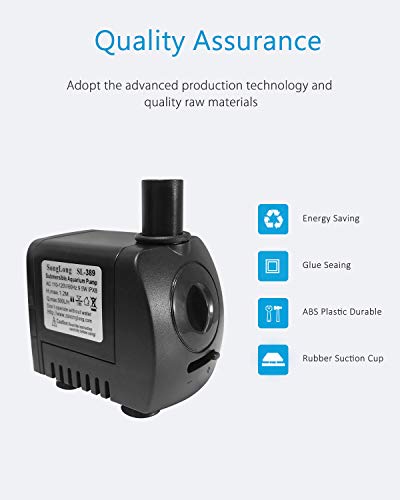 【SUCTION CUP and 6Ft POWER CORD】Lengthy sufficient wire for straightforward set up. 4 robust suction cups on the backside of the pump assist hold it in place, so you may stick it on the proper aspect of the aquarium, both vertically or horizontally