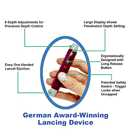 PRECISION DEPTH CONTROL with 6 Depth Changes, in-built Security Change locks the Lancet Set off when it’s uncapped and safer straightforward one-handed Lancet Ejection