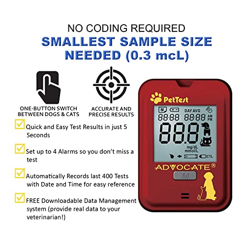 IF YOU’D PREFER A PAIN FREE SYSTEM, improve from this Crimson Dot System to our newest PetTest PAINLESS Blood Glucose Monitoring System. Test it out by visiting the Advocate PetTest Retailer!