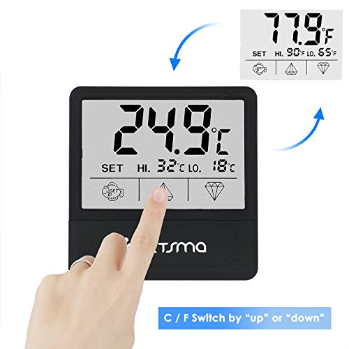 🐌🐌 Straightforward to Function : pull down the black battery cowl beneath the display screen, insert the battery, shut it, stick and browse the tank temperature. Press “up” or “down” to modify °C / °F