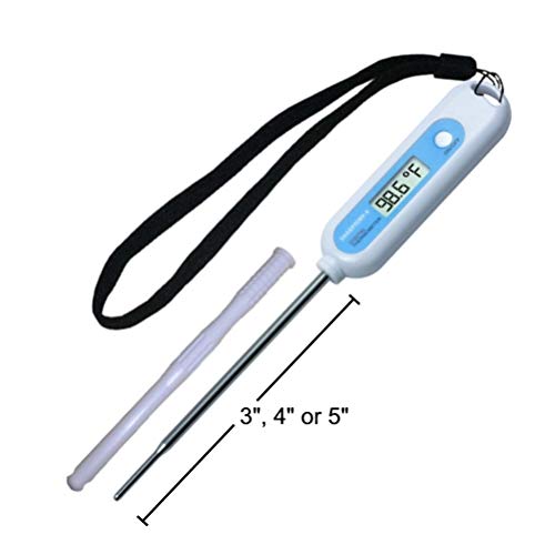 The Sharptemp-V Veterinary Thermometer is a flexible digital thermometer constructed rugged sufficient for heavy- responsibility use on-farm, within the secure, on the veterinary clinic and at dwelling. The lengthy, slender probe is ideally suited to livestock and companion animals. The 8 to 10-second learn time and enormous show with daring digits makes taking animal temperatures quick, handy and correct. The thermometer stops blinking and beeps loudly when a secure, correct temperature is reached. Auto-shut-off after 9 minutes helps protect battery life. The thermometer properly suits in a pocket and is comfy to carry. The Sharptemp veterinary thermometer measures physique temperature from 90 °F to 107°F and has an accuracy of +/- 0.1 F°. Regular temperatures for widespread animals and livestock are printed on again for handy reference. The Sharptemp-V is powered by a typical user-replaceable LR44 lithium battery (included). The high-quality stainless-steel probe is 3/16” (5mm) diameter and featured a rounded, blunt tip for secure, comfy insertion. The thermometer is accessible with three probe lengths: 3 inches (76 mm), 4 inches (102 mm) and 5 inches (127 mm). A tough-plastic, friction-fit probe cowl slides on and off with ease whereas stopping injury throughout storage. The physique of the Sharptemp-V veterinary thermometer measures 4” x 1-1/8” x 5/8” (102mm x 29 mm x 16 mm) and suits comfortably in a consumer’s hand. A woven nylon lanyard loops comfortably over wrist, including stability and safety. The robust sturdy plastic physique and clean stainless-steel probe are designed for straightforward cleansing and disinfection with a moist material. The Sharptemp-V Comes with probe cowl, sturdy plastic storage case, battery and directions. CE- authorised. 1-year guarantee. Click on “ADD to CART” and begin measuring animal temperatures quick and precisely with the Sharptemp Veterinary Thermometer. Your satisfaction is 100% assured!