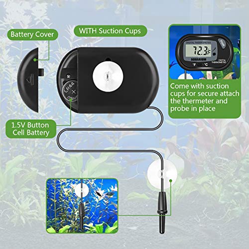 【Measuring Vary】 The measuring vary of fish tank thermometer is -50°C ~ +70°C / -58°F ~ 158°F, the accuracy is +/- 1 diploma Celsius. Dimensions: 58×38×15mm. Energy provide: LR44 cell battery (included).