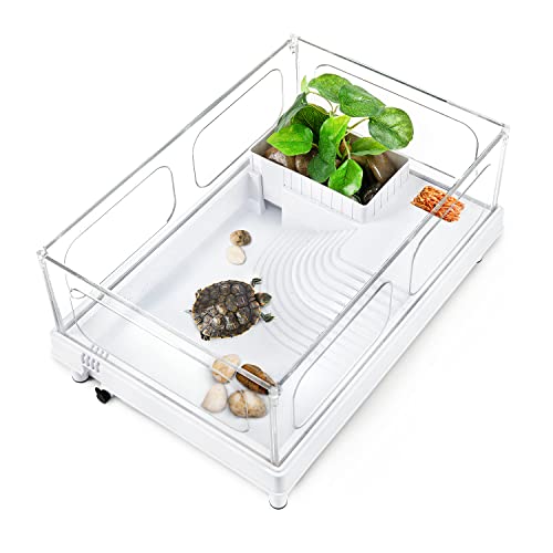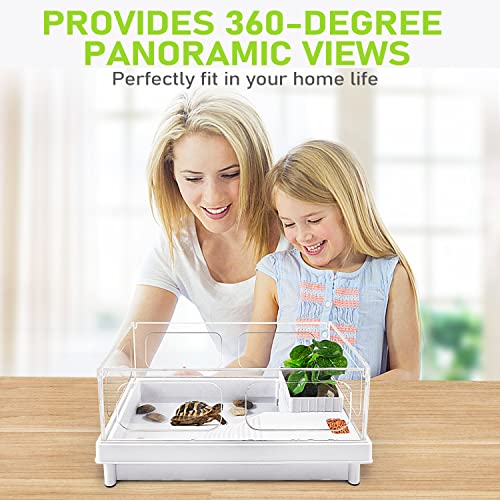 Chosen Materials:This turtle aquarium is constructed by 4 items of acrylic panels, which is of excellent transparency, no deformation, sturdy and non-breakable. By the panels, the infant tortoises can stretch their neck, pop their little heads out, go searching curiously! Additionally it is mild in weight due to the fabric it manufactured from, handy for water altering.