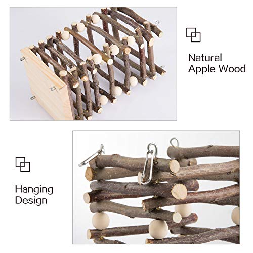 Hanging Apple Wood Rabbit Hay Feeder- Wooden Grass Shelf with 2 Hooks Biting Resistant Small Animals Feeding Hay Manager…