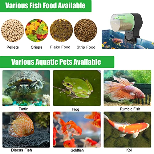 【Battery Powered】 The fish feeder is powered by two AA batteries, which is easy to replace and can be used continuously for 2-3 months. It is suitable for a variety of fish feed such as strips, powder and granules.