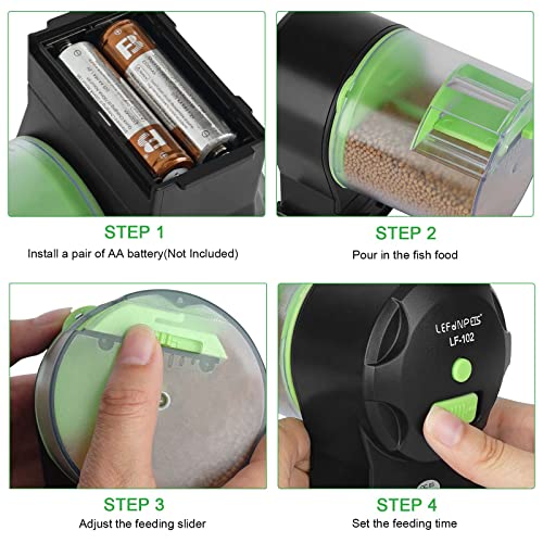 Lefunpets Automatic Fish Feeder, Auto Fish Food Feeder with 2 Timer Dispensers for Aquarium or Small Fish Turtle Tank…