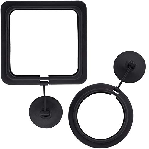 OIIKI 2 Pack Fish Feeding Ring, Aquarium Fish Floating Meals Feeder, Sq. and Spherical Feeder Circle with Suction Cup(Black)