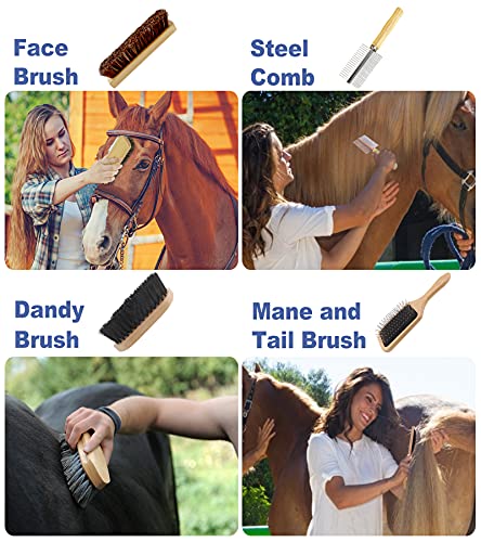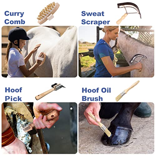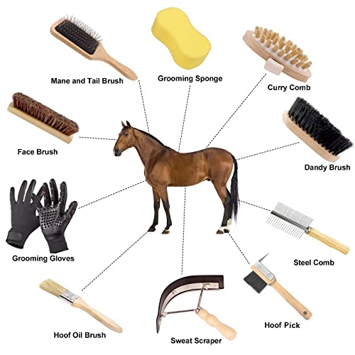 ♞【Package contains】You will get a set of professional horse grooming set,horse hoof picks,Pet Grooming Gloves ,horse swat,Mane and Tail Brush,pet steel combs,curry brush,Horse Groomer Sponges,horse soft brush,Leather Dandy Brush with Stiff PVC Bristles,Hoof Oil Brush