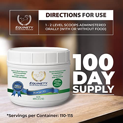 ALL AROUND SUPPLEMENT – Equinety Horse XL is a strong mix of pure amino acids. Efficient to be used in working/efficiency horses as a preventative, or physique restore in instances when attempting to assist stress, founder, allergic reactions, cracked hooves, torn muscle tissues and so many extra. In case your horse is battling any of those points, assist take the guesswork out and check out Horse XL to search out out if it’s the lacking piece you’re searching for! Protected for horses of all ages and sizes, together with pregnant mares.