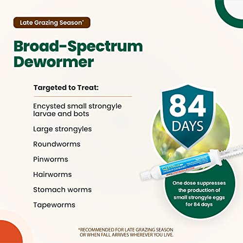 Secure to be used on horses, ponies, and foals 6 months or older, one dose suppresses the manufacturing of small strongyle eggs for 84 days. Permitted to be used in breeding stallions and pregnant/nursing mares