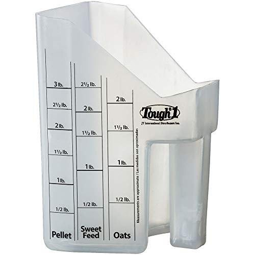 Powerful-1 clear grain scoop which can be utilized to measure any kind of grain for horses and livestock. This grain scoop has measurements on the facet.