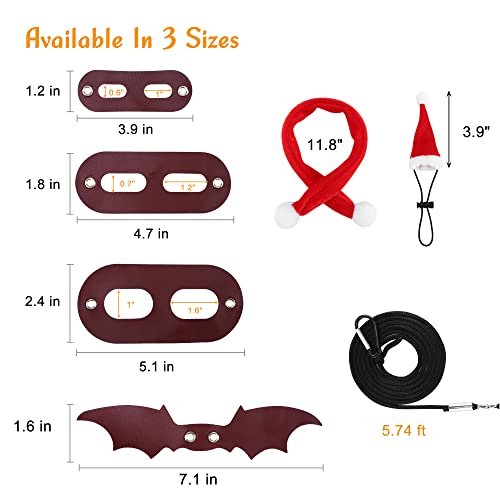 PACKAGE INCLUDING: Christmas scarf*1, Christmas hat*1, bat wings*1, chest strap (small*1, medium*1 and large*1)*3, Leash rope*1, carabiner*1.
