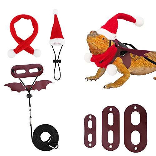 Filhome Christmas Bearded Dragon Harness and Leash with Wings Hat Scarf, 8 Pcs Lizard Harness Iguana Reptile Leash Set…