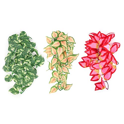 PACKAGE INCLUDED: 3pcs 12 inch hanging reptile plant with suction cup,excellent for reptile decorations,reptile habitat vegetation,terrarium hanging plant,snake terrarium vegetation and aquarium fish tank decoraitons