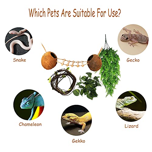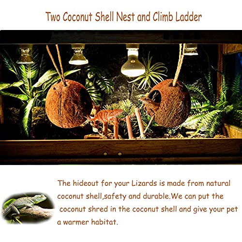 【BEST HIDDEN】That is composed of two coconut shells and a ladder, you’ll be able to increase a couple of reptile inside, they will have their very own territory, with a pure habitat of coconut shells, rattan, simulated leaves, let your pet really feel the breath of nature, properly hidden.