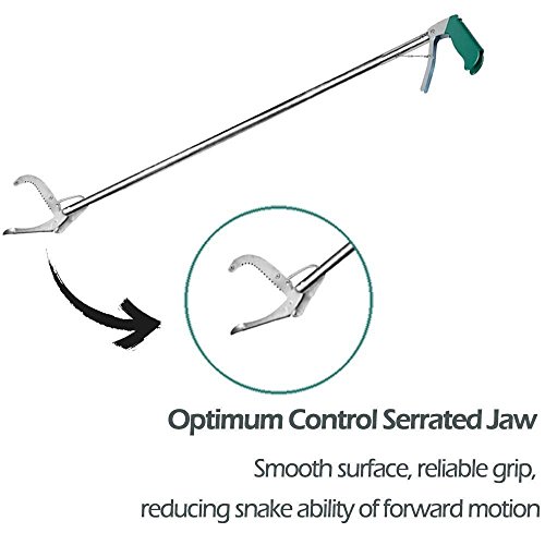 [No Damage to Snakes] – Easy serrated broad jaw permits to get most grip stress with minimal threat of injury to the reptiles. Allow you to safely launch them in one other space. In case you are nonetheless frightened about undetected snakes hidden within the grass or desert attacking you, we suggest the snake guard gaiters. You possibly can search the ASIN “ B07TYVVCFZ” on AMAZON.