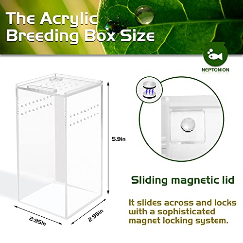NEPTONION Acrylic Breeding Box 3″x3″x6″ Transparent Mini Reptile Habitat Terrarium with Sliding Cover Magnetic Closure for Small Animals and Bugs,Including Tarantulas,Crickets,Snails,Hermit crabs,Frog