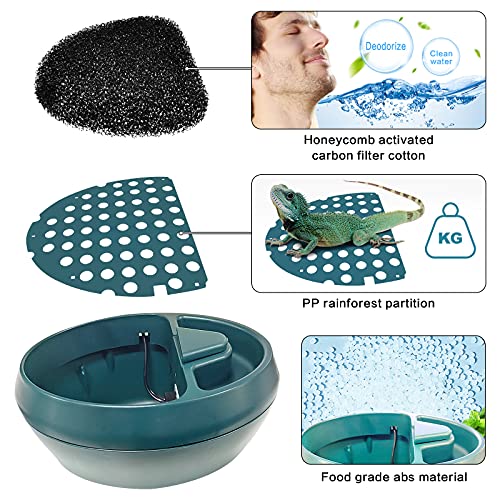 【Double Filtration System】The activated carbon filter cotton and the PP rain forest partition have a double filtration impact, which may filter impurities within the water and supply high-quality water for lizards and different reptiles.