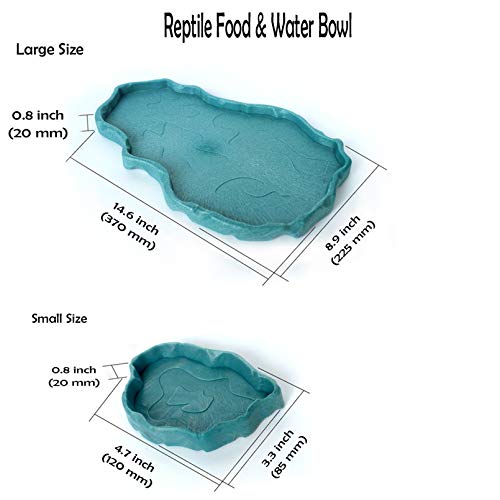【Thoughtful Design】Although the shape of our bowl is irregular in design, it has no sharp angles which has no potential to harm your pet. We kindly prepared two different sizes of reptile food and water bowls. When used, you can choose one according to the size of your pet. Or you can put dry food in one bowl and water in the other.