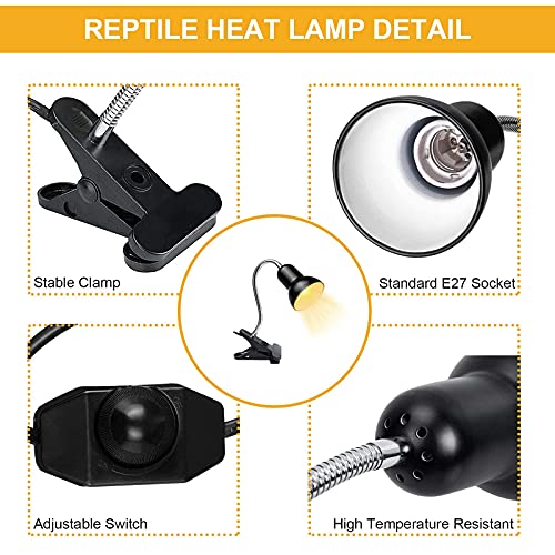 【Appropriate for Numerous Scenario】The basking reptile gentle outfitted with a rotatable chrome steel tube which could be rotated in 360 levels. As well as, there’s a sturdy clamp with 2 inch pressure, it may be adjusted to appropriate for gecko tank, snake cage, turtle tank, aquariums and different reptile terrariums, you may set up it simply in any place you need.