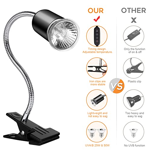 【Timing and Adjustable Temperature】 The reptile lamp stand may be timed in keeping with the reptile’s wants. You may select the suitable bulb to regulate the brightness and warmth, assembly the wants of reptiles at totally different instances.