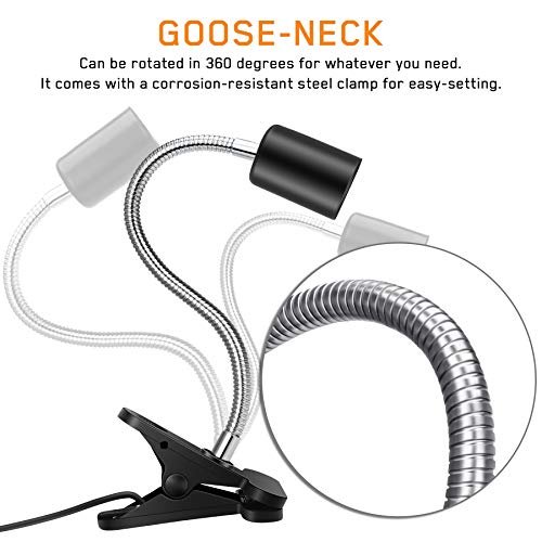 🌟 – Versatile Designed:Extramely versatile 11-inch goose-neck could be rotated in 360 levels, and securely clipped onto a terrarium.