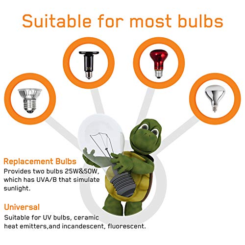 😉 – Alternative Bulbs:Gives two E27 bulbs 25W&50W,which has UVA/B that simulate daylight. The Ceramic socket which may stand up to fixed excessive warmth. Appropriate for incandescent, fluorescent, UV bulbs, and ceramic warmth emitters.