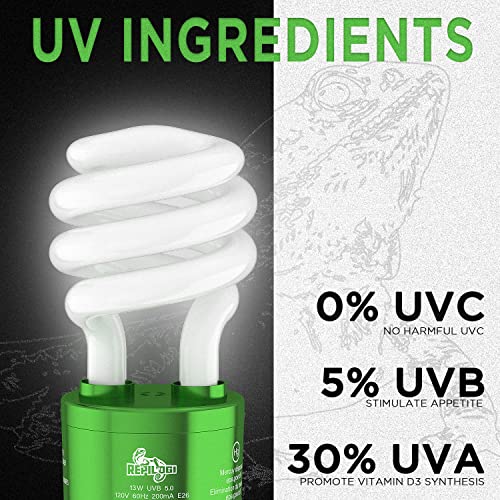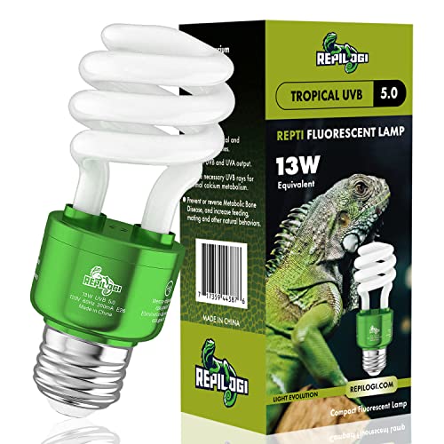 repilogi UVA UVB Reptile Light 5.0 13 Watt – Heat Lamp for Tropical/Sub Tropical Reptiles – Fluorescent Simulation Color…