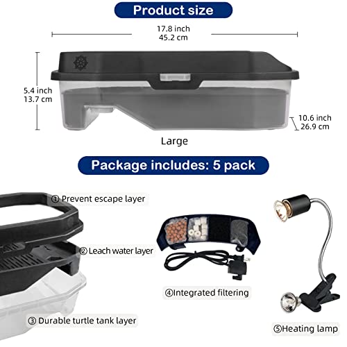 BINANO Turtle Habitat Turtle Tank Aquarium Includes Accessories with Heat Lamp + Water Filter, Prevent from Escaping…