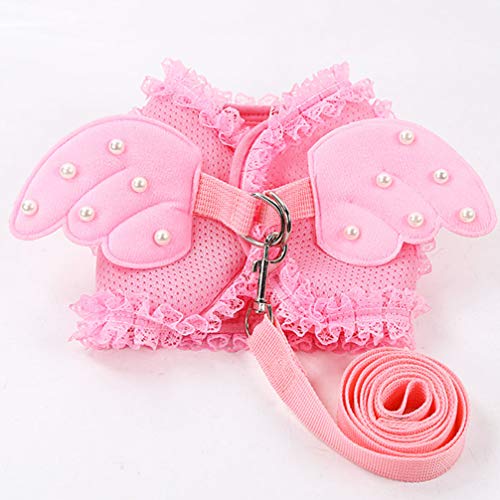 POPETPOP Cat Harness and Leash – Adorable Pet Cat Dog Rabbit Harness and Leash Set with Lace Artificial Pearl Angel Wing…
