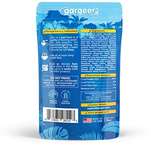 YOU GET MORE. Gargeer gels are complicated dietary components that come as a concentrated powder, and gel once you add boiling water. Now you can put together a moist meals to your animal that’s superior to any dehydrated flakes or pellets. 3 oz of powder makes roughly 1 pound of prepared to make use of product.